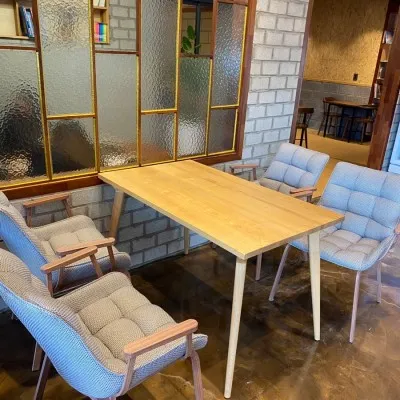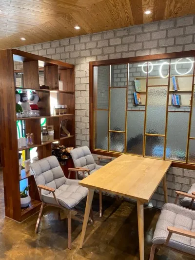먼저 카운터 앞쪽으로는 착화감 좋은 의자와 테이블로 이루어진 4인용 자리가 있습니다.