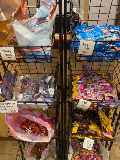 카운터 옆에서는 사탕, 젤리 등 간식 또한 구매하실 서 있습니다.