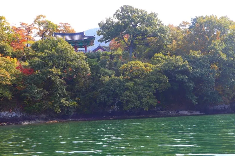 바다 쪽에서 한산도 제승당을 볼 수 있습니다.