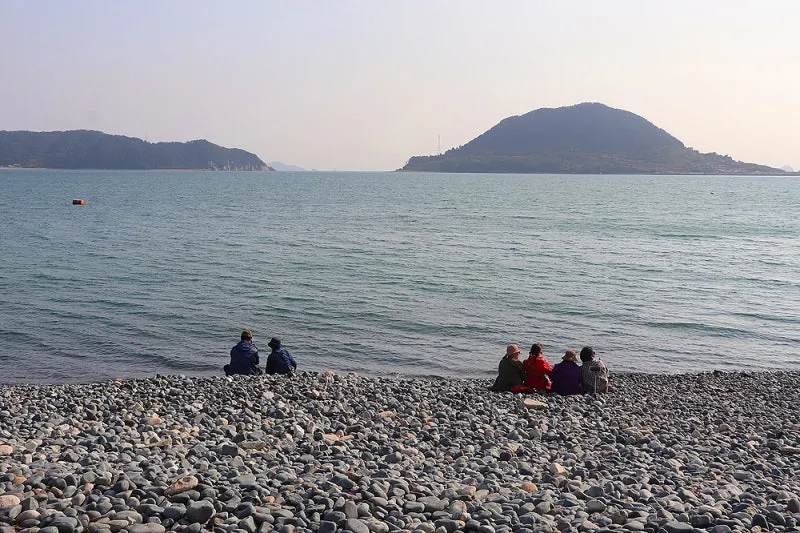 따사로운 몽돌에 앉아 부딪히는 파도소리 들으며