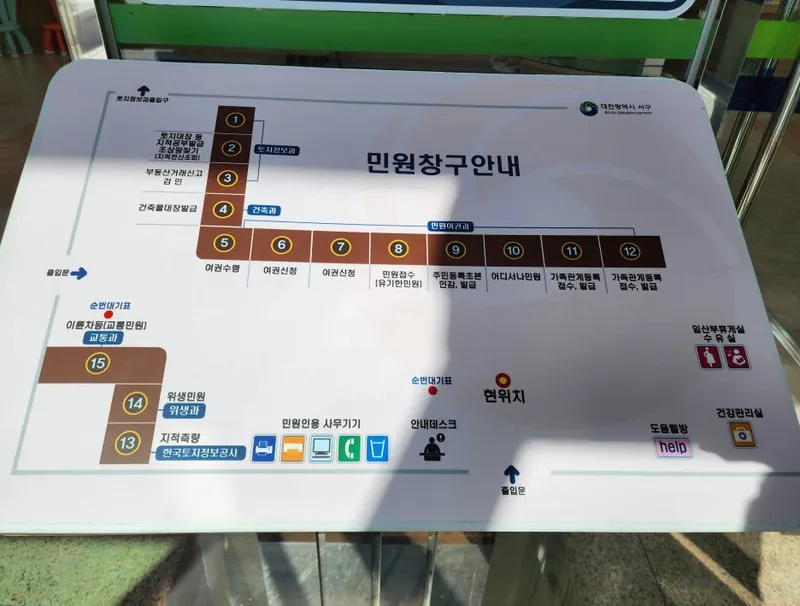 대전 서구청을 방문하면 가장 먼저 만나게 되는 공간, 바로 민원 봉사실입니다.