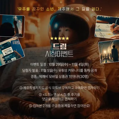 - 발표일까지 제주특별자치도 공식 유튜브 채널 구독 및 댓글후기를 유지해야합니다.