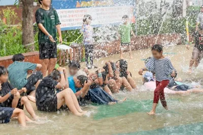그럼에도 물놀이하는 어린이들로