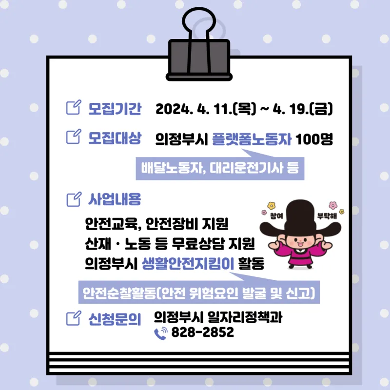 - 참여자: 안전순찰활동, 플랫폼노동자 실태조사 협조 등