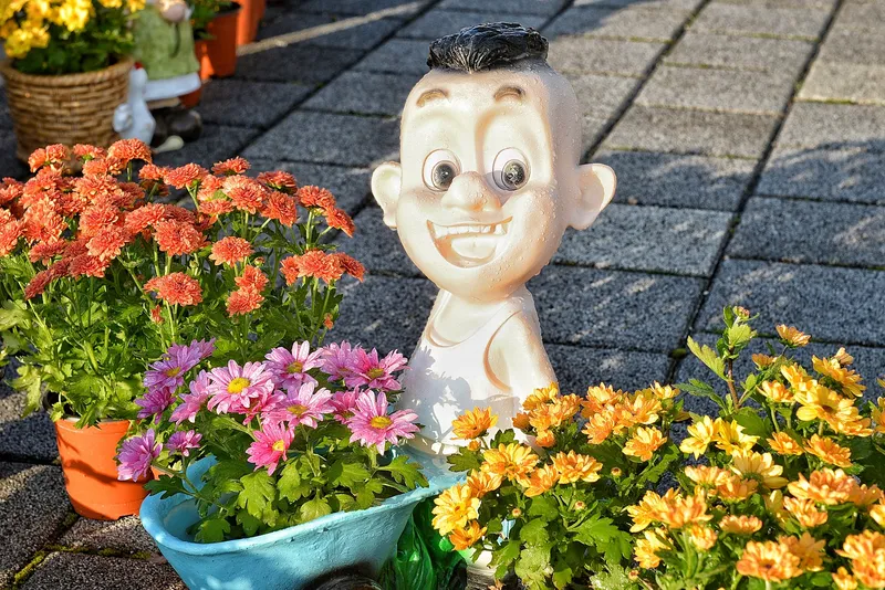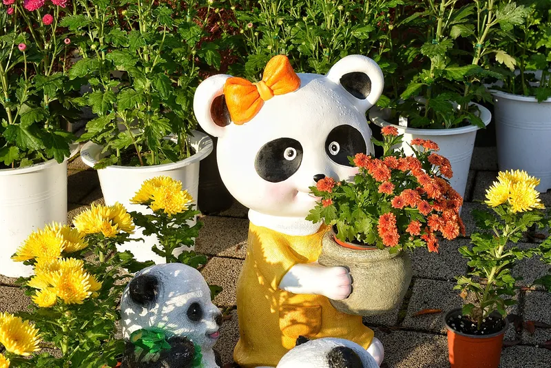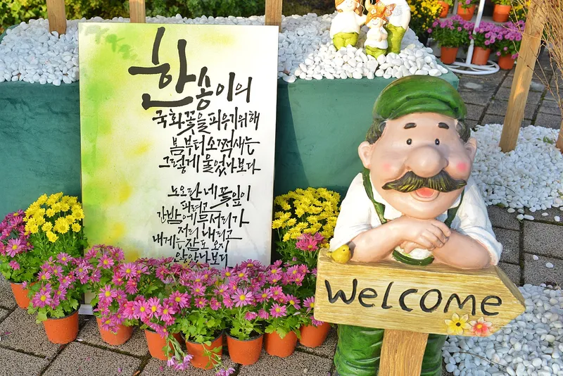 국화 마음에 드시나요? 예쁜 인형들도 국화를 예쁘게 보여주고 있습니다.
