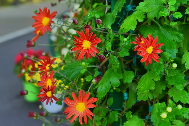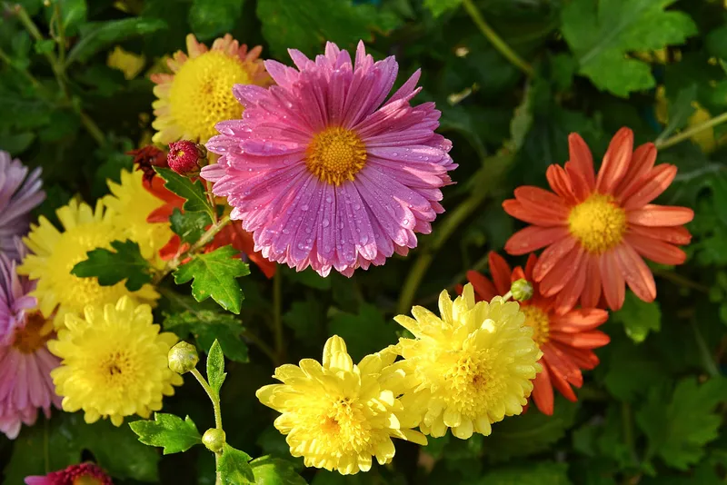 다양한 색채로 풍성한 국화가 피어 있습니다.