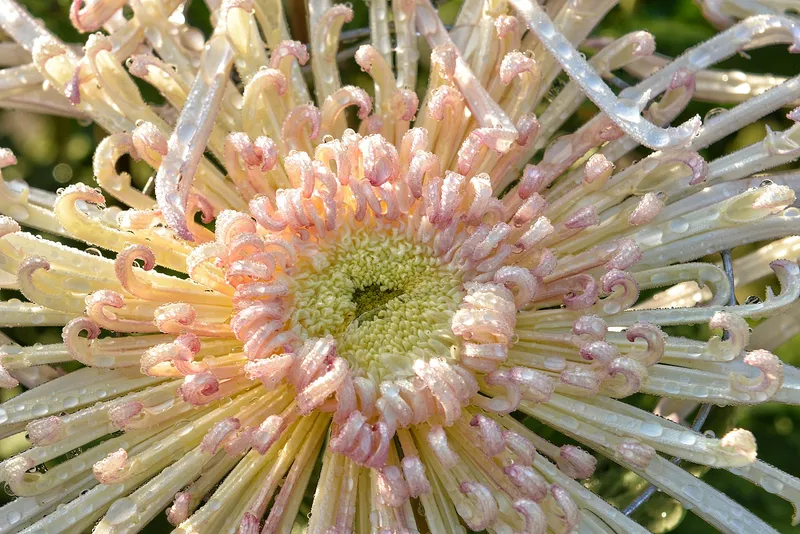 아침에는 예쁜 국화 꽃잎에 이슬이 맺혀 진주가 알알이 맺혀 정말 환상적이 아름다움을 보여 줍니다.