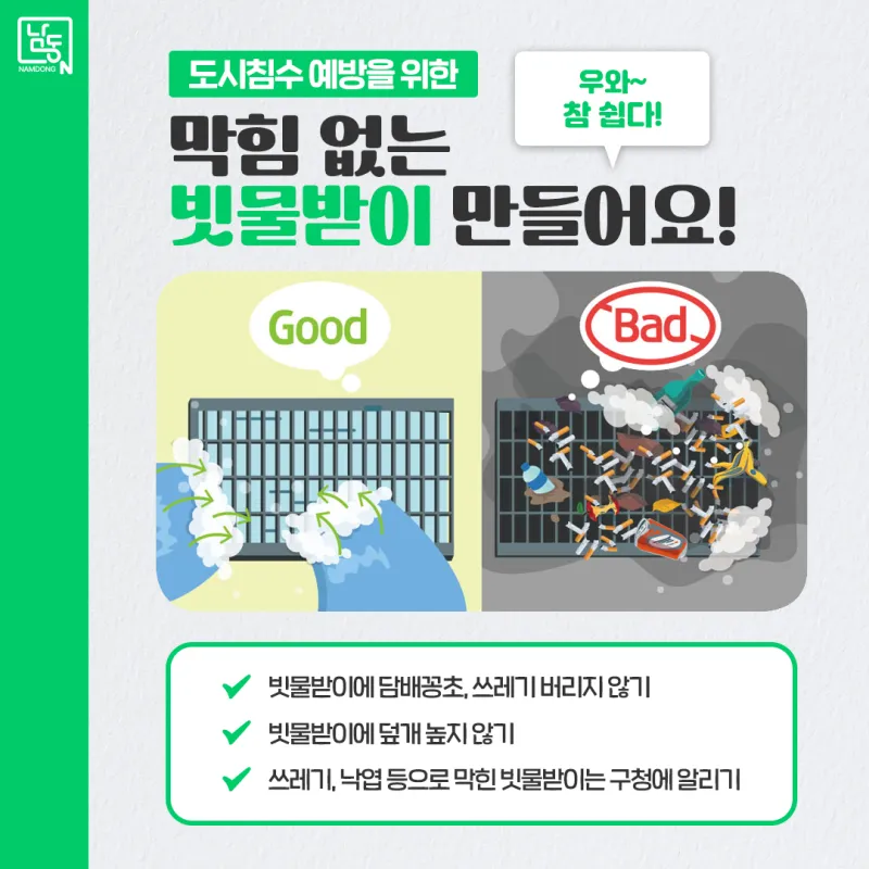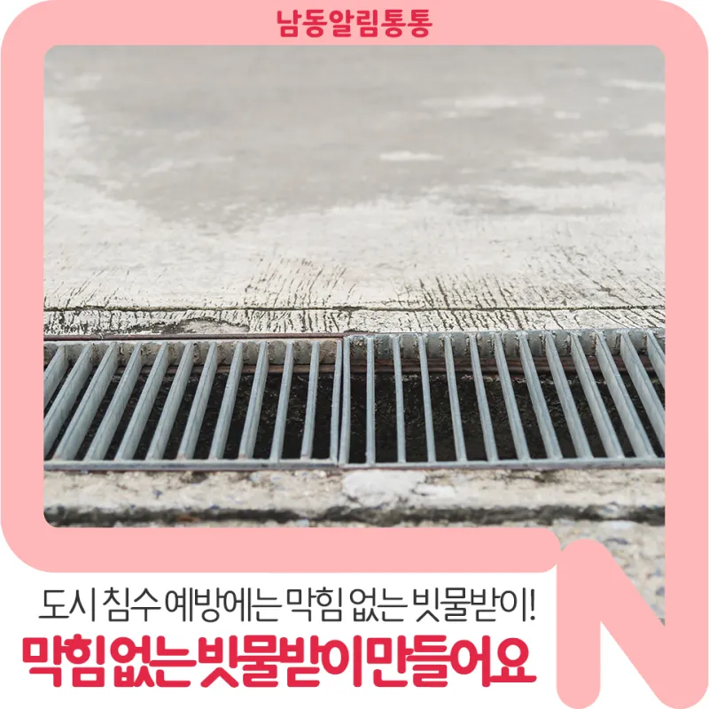 도시 침수 예방에는 [막힘 없는 빗물받이]가 필수! 함께 만들어요!