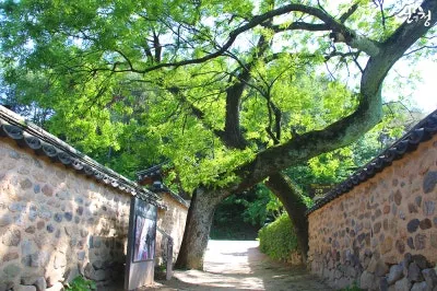 이씨고가 입구에 있으며 선비나무로 불리는 수령 320년 된 회화나무 아래를