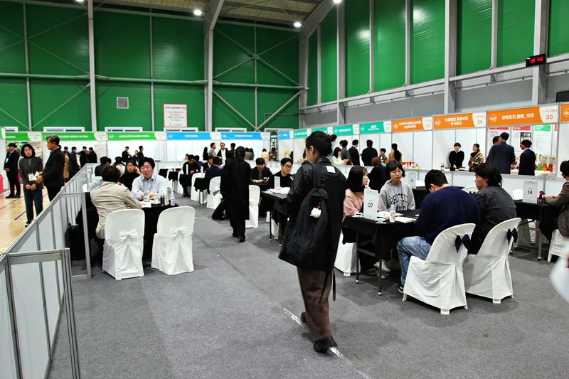 우와! 전 테이블이 거의 만석입니다. 참가기업, 생산농가와 구매의사가 있는 국내외 바이어들이 구매계약을 위한 상담이 진행되는 모습입니다.