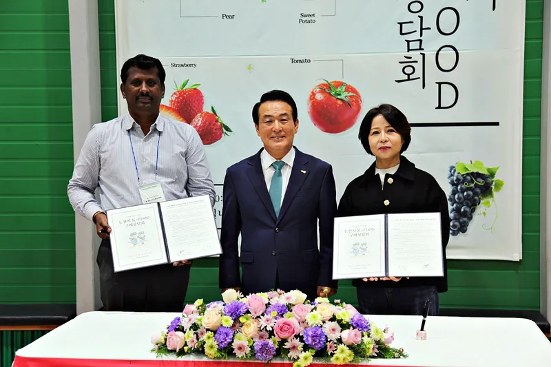 논산시가 지역 농식품의 유통과 수출 판로 확대를 위한 K-FOOD 구매상담회에서 그 의의와 논산시 역할에 대하여 취재진과 인터뷰를 진행하는 논산시장입니다. 논산의 특산품 논산딸기는 2025년에 인도네시아 자카르타에서 농식품 박람회를 개최하여 해외 판로를 개척하고 있답니다. 태국 방콕에서의 농식품 박람회에서 폭발적인 성과를 거두었습니다.