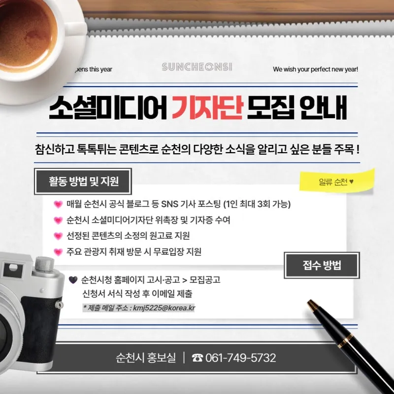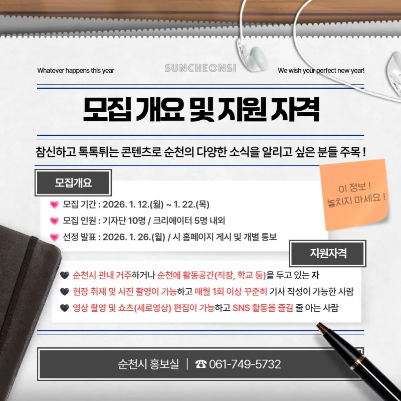 2026년 순천시 소셜미디어 기자단 & 크리에이터 모집