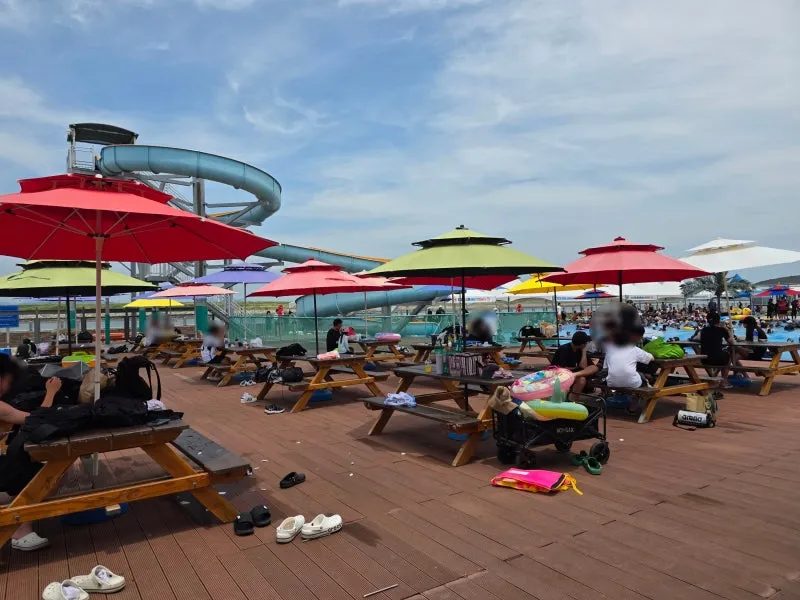 테이블 존은 외부 음식이나 도시락을 넓게 펼쳐놓고 먹기에 좋고, 주로 성인풀을 이용하는