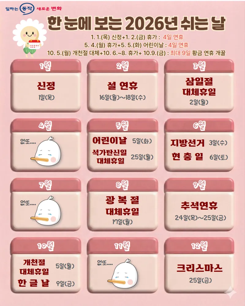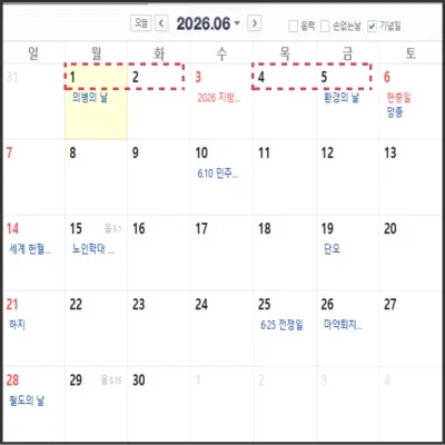 2026년 공휴일과 연차 쓰기 좋은 징검다리 휴일을