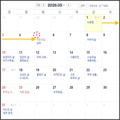 2️⃣ 5월 : 어린이날 - 5/4 월요일