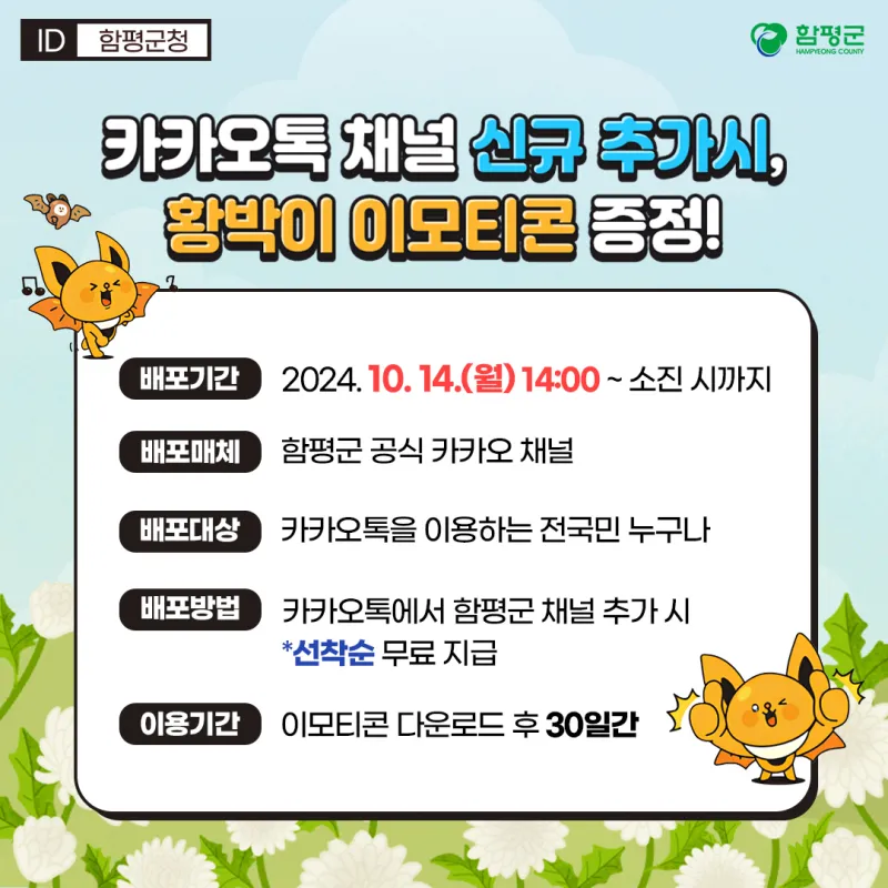 카카오톡에서 함평군 채널 추가 시 선착순 무료 지급 |