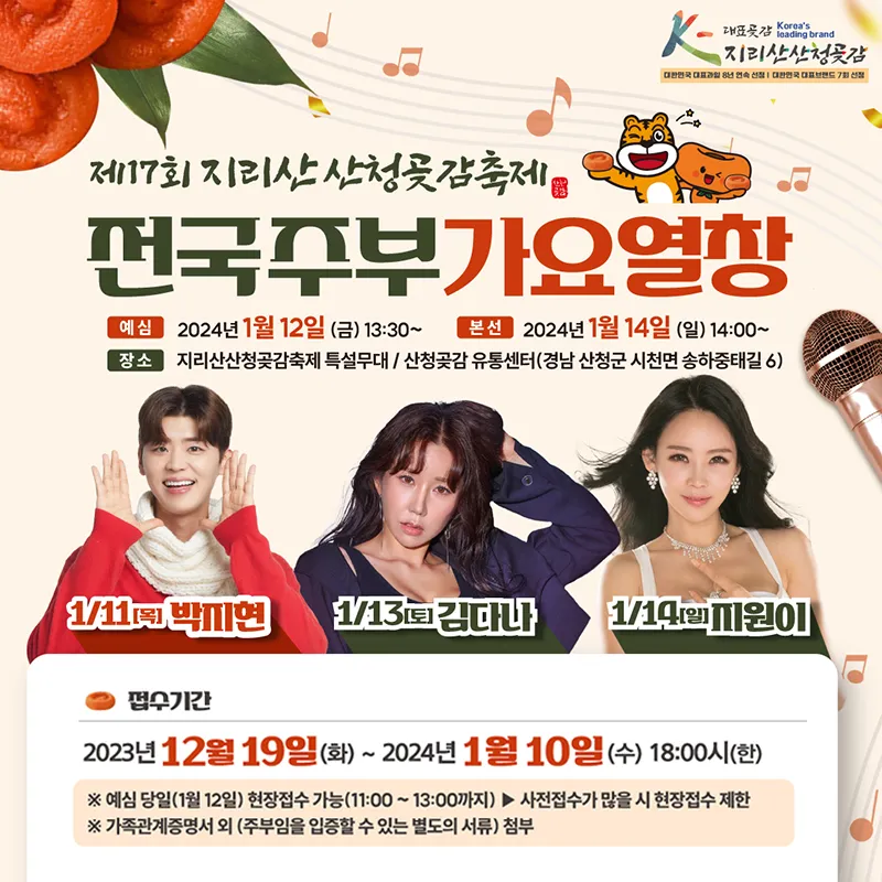 제17회 지리산 산청곶감축제 전국주부가요열창 참가자 모집 안내