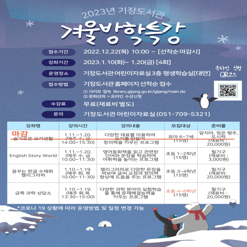 2023년 기장도서관 <겨울방학특강-금쪽과학상담소> 수강생 모집 안내