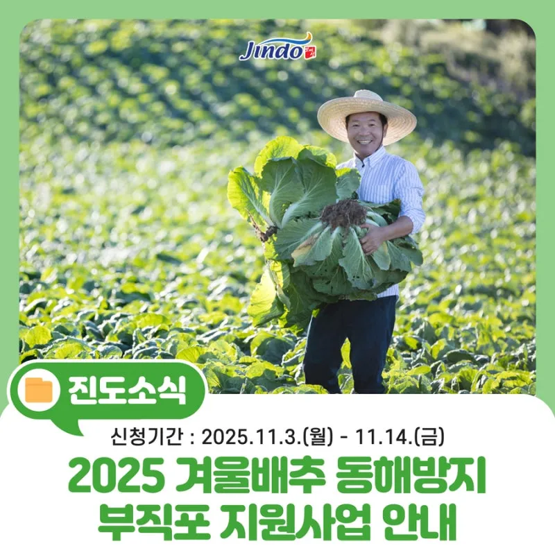 진도군 2025년 겨울배추 동해방지 부직포 지원사업 신청해요!