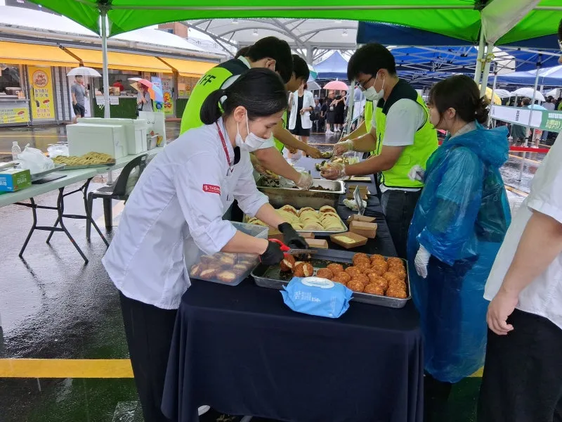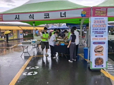 행사가 시작된 오후 3시경부터 비가 그쳐주어 차질 없이 진행되었습니다. 시식코너는 성황이었습니다.