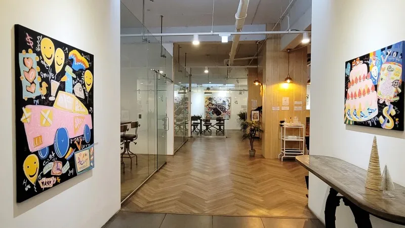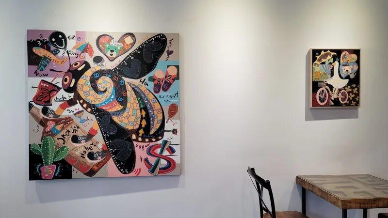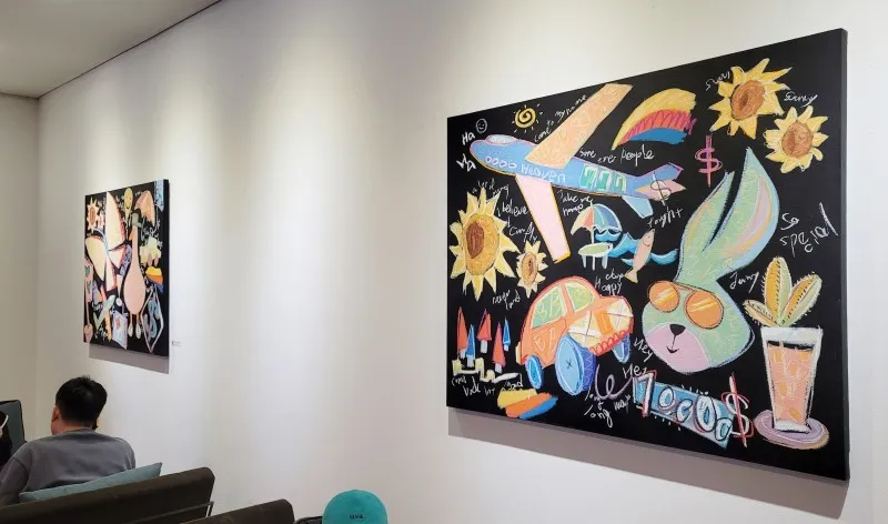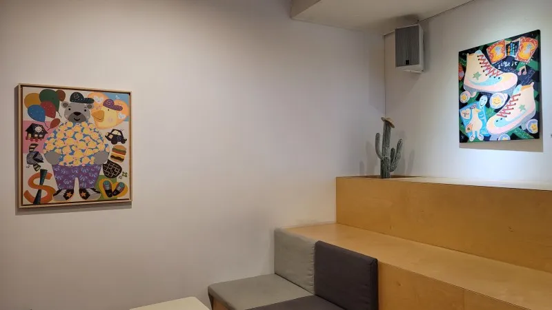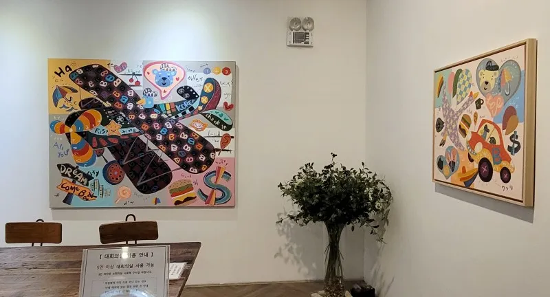 통로를 지나 안쪽은 이야기하는 분보다 공부와 독서를 하거나 무언가에 열중하는 분이 많아서 조용한 분위기입니다. 작품은 안쪽에서 더 많이 볼 수 있습니다.