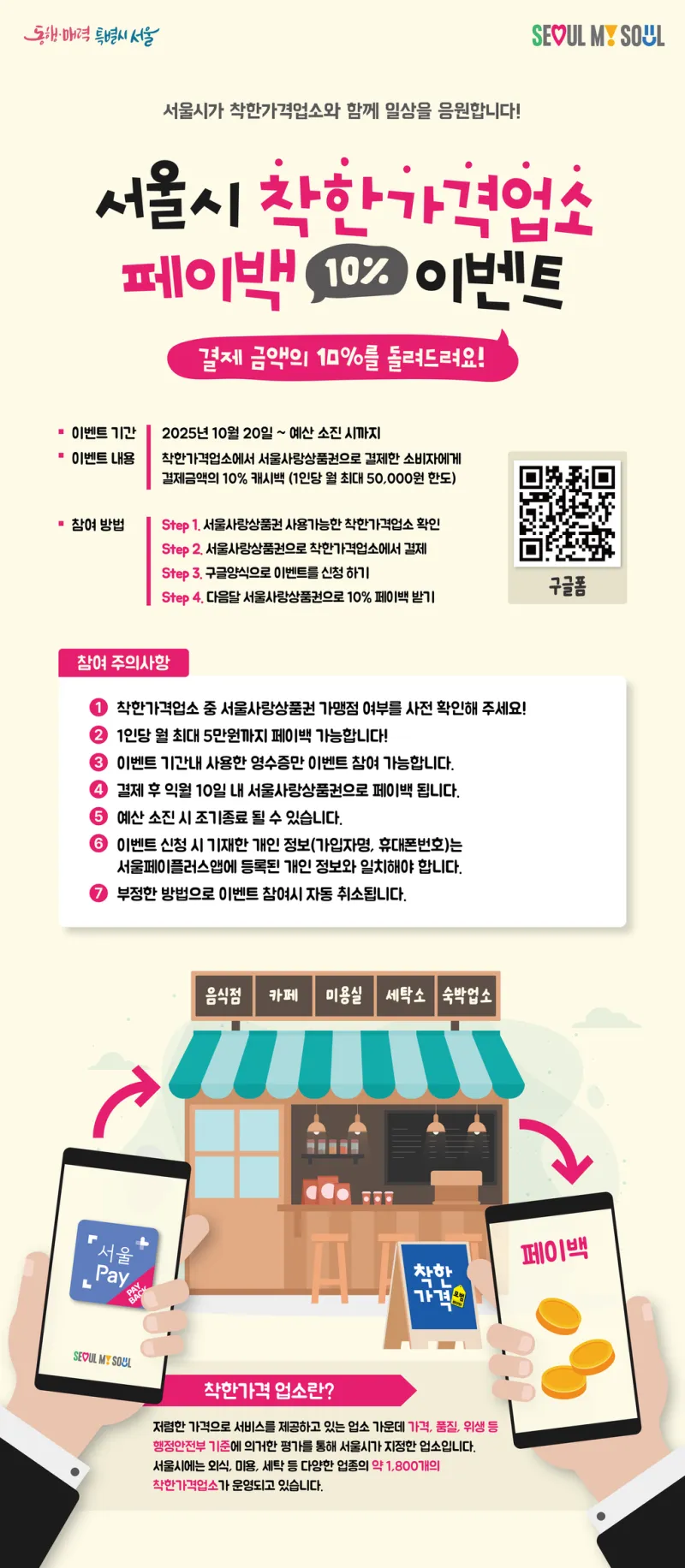 서울사랑상품권으로 착한가격업소 결제 시 10% 페이백 이벤트(개별 신청 필수)