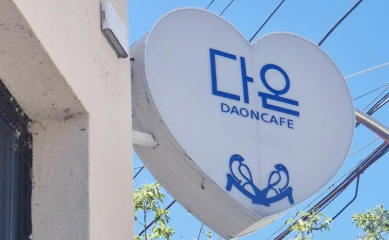 삼척 원덕도서관 근처에 있는 포인트 색상이 파랗고 파랑새도 창문에 있었던 삼척 카페 다온카페 들렸습니다.