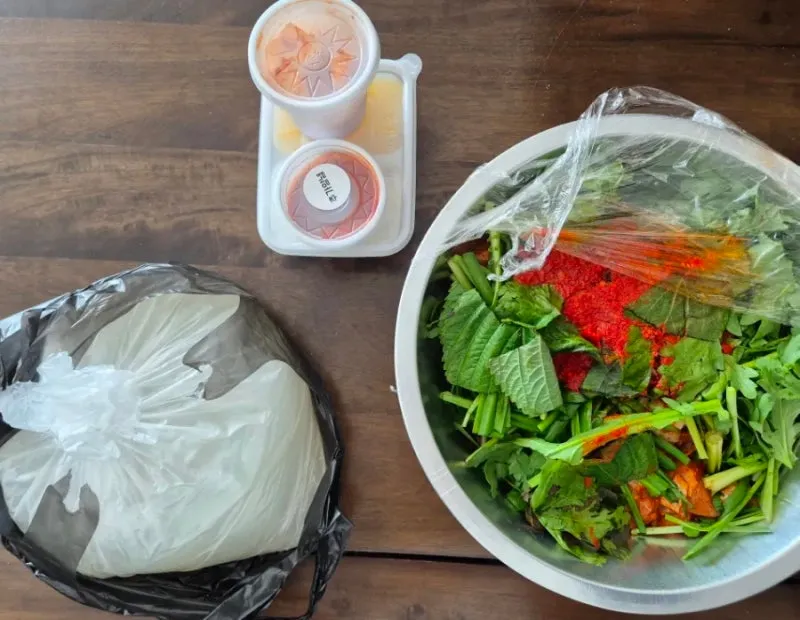 포장도 많이 하는 지역맛집이라 포장용기에 포장된 닭갈비가 풍성하고 깔끔합니다.