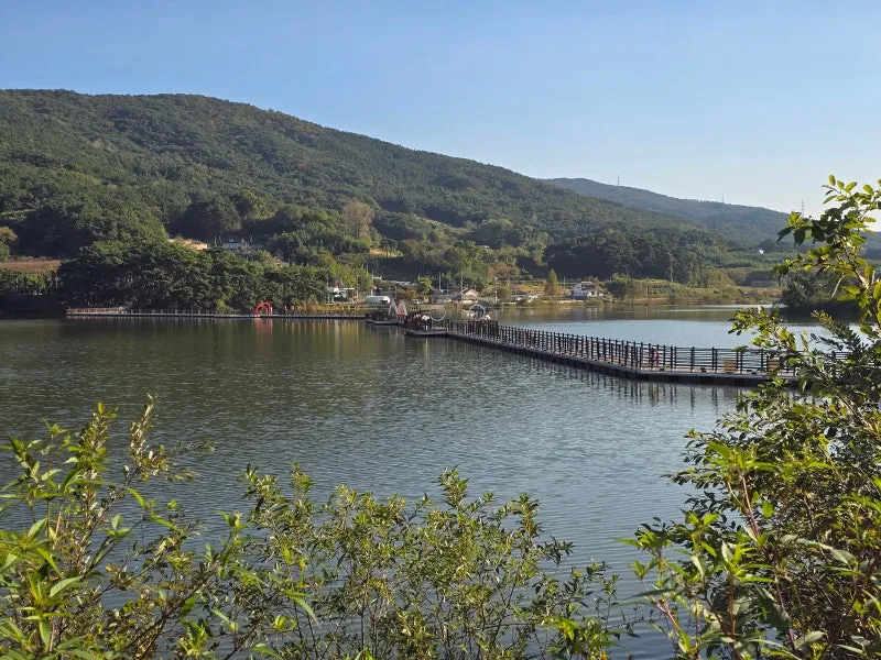 노동저수지 수상길을 걸으며 가을의 정취에 깊숙이 물들어 보세요.
