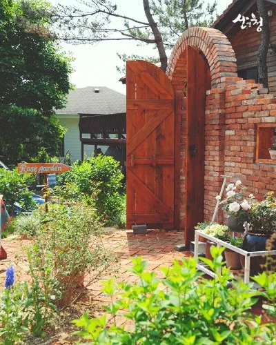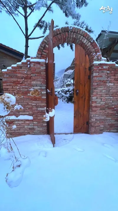 그 중에서도 산청 밀드플레 펜션 앞 작은 문을 살짝 열고