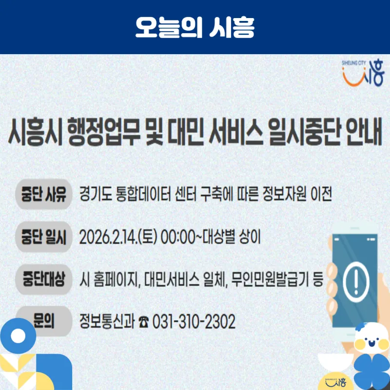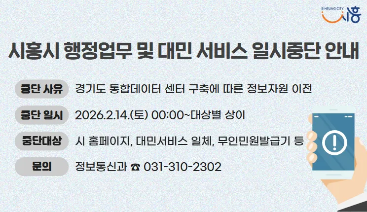 📢 시흥시 행정업무 및 대민서비스 일시 중단 안내