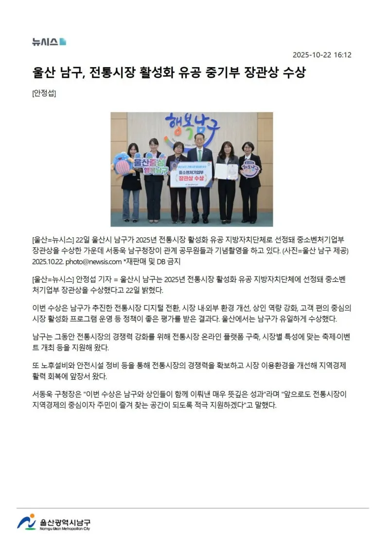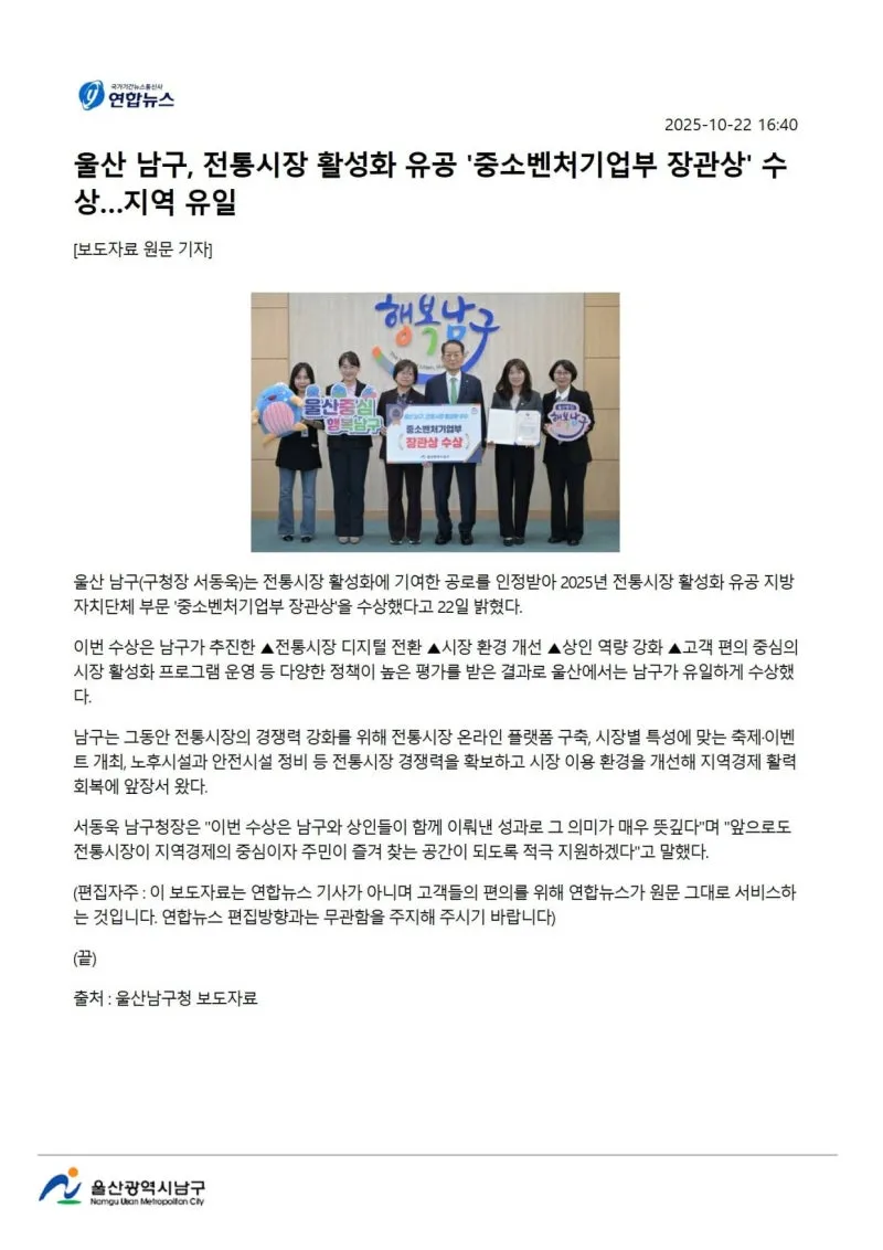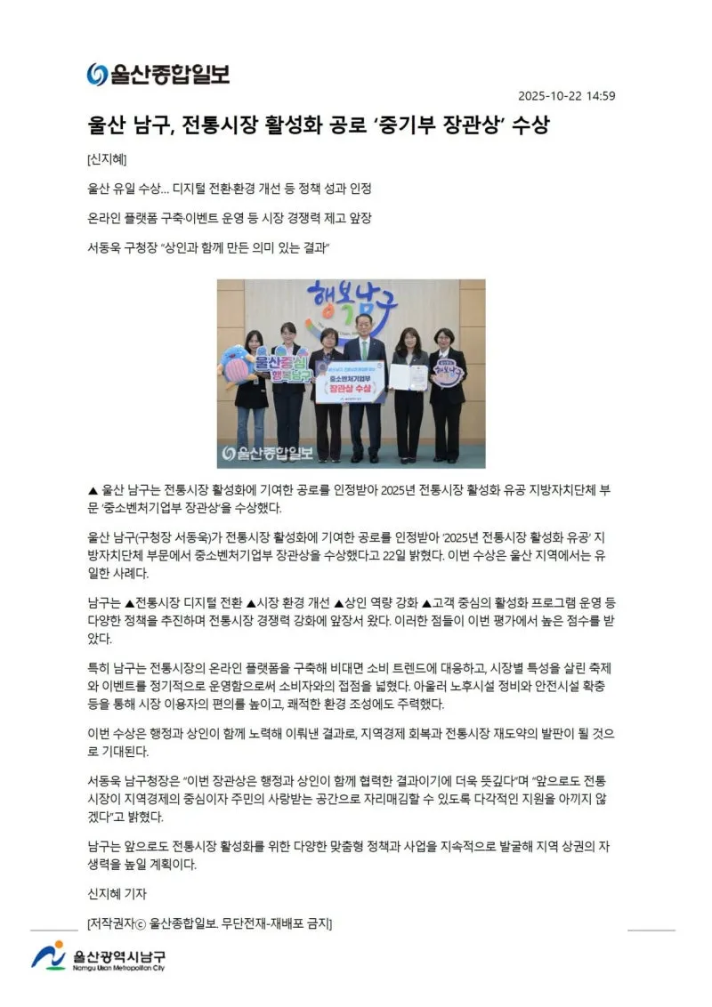 {"title":"[행복남구 오늘의신문] 남구,👍전통시장 활성화 공로 중기부 장관상 수상🏆 (10월 23일 목요일)","source":"https://blog.naver.com/ulsan-namgu/224050764220","blogName":"울산광역시..","domainIdOrBlogId":"ulsan-namgu","nicknameOrBlogId":"울산광역시남구청","logNo":224050764220,"smartEditorVersion":4,"blogDisplay":false,"cafeDisplay":false,"lineDisplay":true,"meDisplay":true,"outsideDisplay":false}