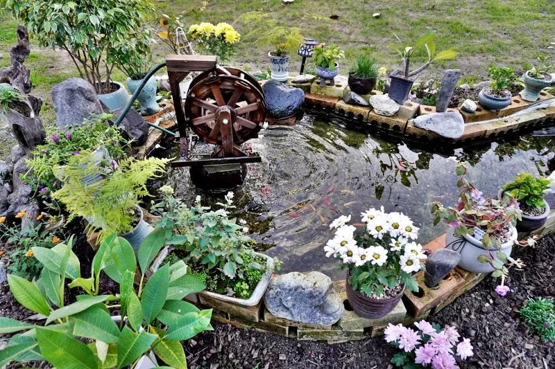 대웅전 앞마당 제법 넓은 터에 잠시 쉬어가게 되는 쉼터도 있습니다. 다육식물이 가득하고 작은 풍차를 시작으로 이어지는 물길을 따라 금붕어가 노닙니다. 가만히 지켜 보고 있노라니 마음이 편안해졌습니다.