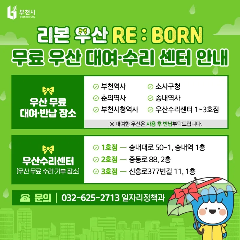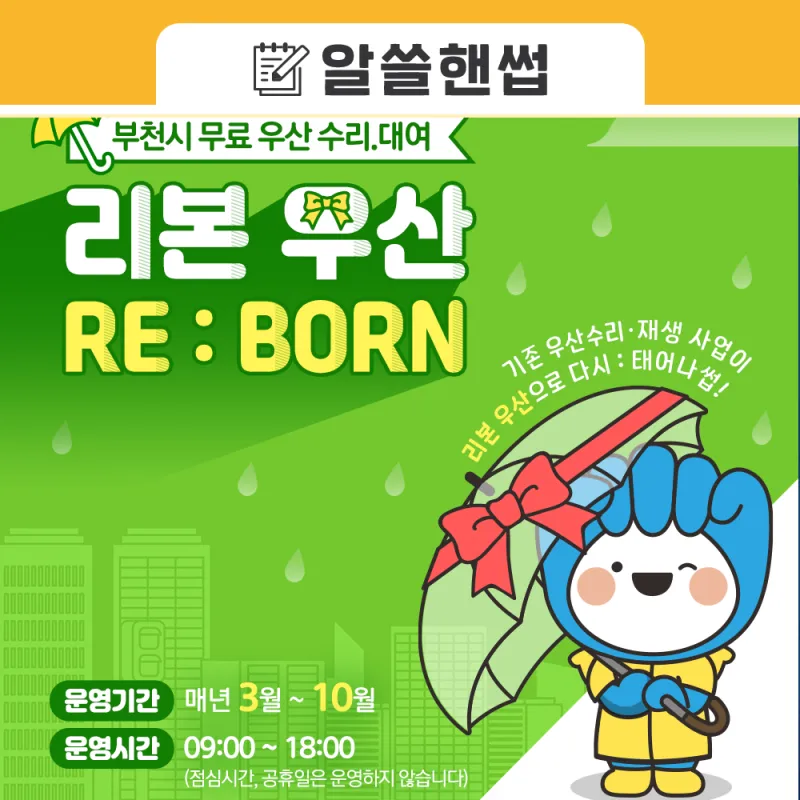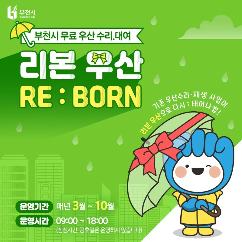 부천시 무료 우산 수리·대여 안내 ☔ 리본우산(RE:BORN)