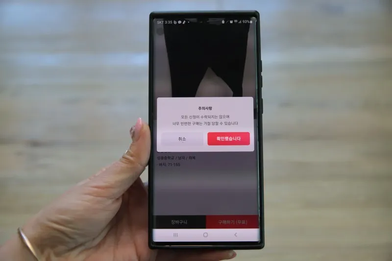 구매하기를 클릭하면 주의사항 멘트가 나오는데
