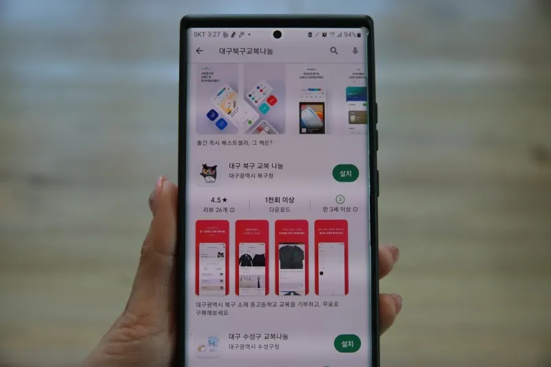 play 스토어에서 대구북구교복나눔을 검색하면