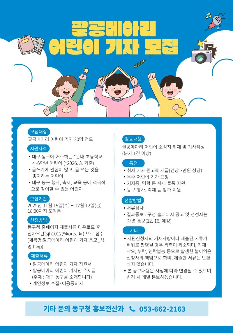 대구 동구 팔공메아리어린이 기자 모집 안내 ✨