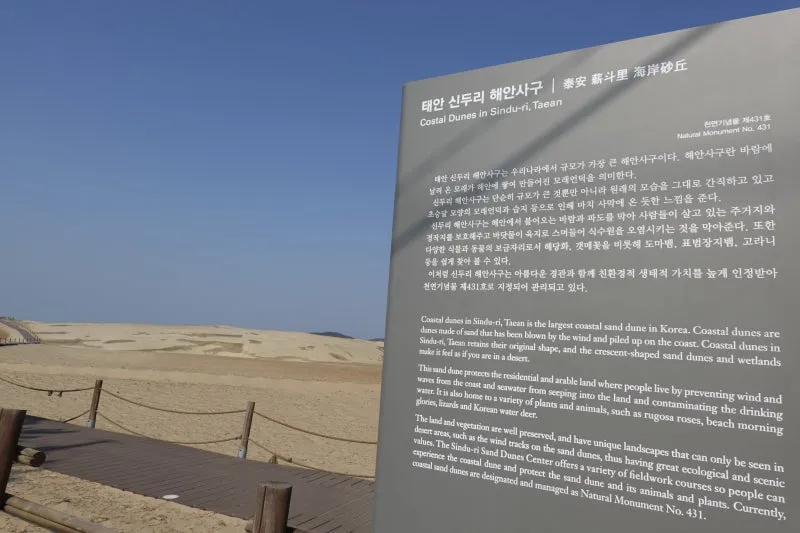 장엄한 모래 언덕을 마주하고 있으면, 마치 사막에 온 듯한 색다른 태안 여행을 경험해 보실 수 있습니다. 이색 경험을 시켜주는 해안 사구야말로 자연이 주는 위대한 선물이 아닐까 하는 생각이 듭니다.