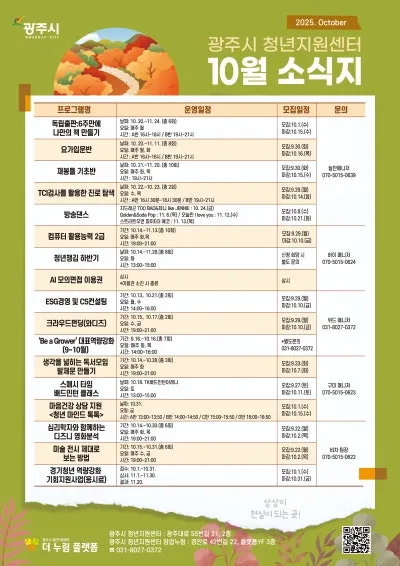 광주시 청년지원센터 「더 누림 플랫폼」 10월 소식지