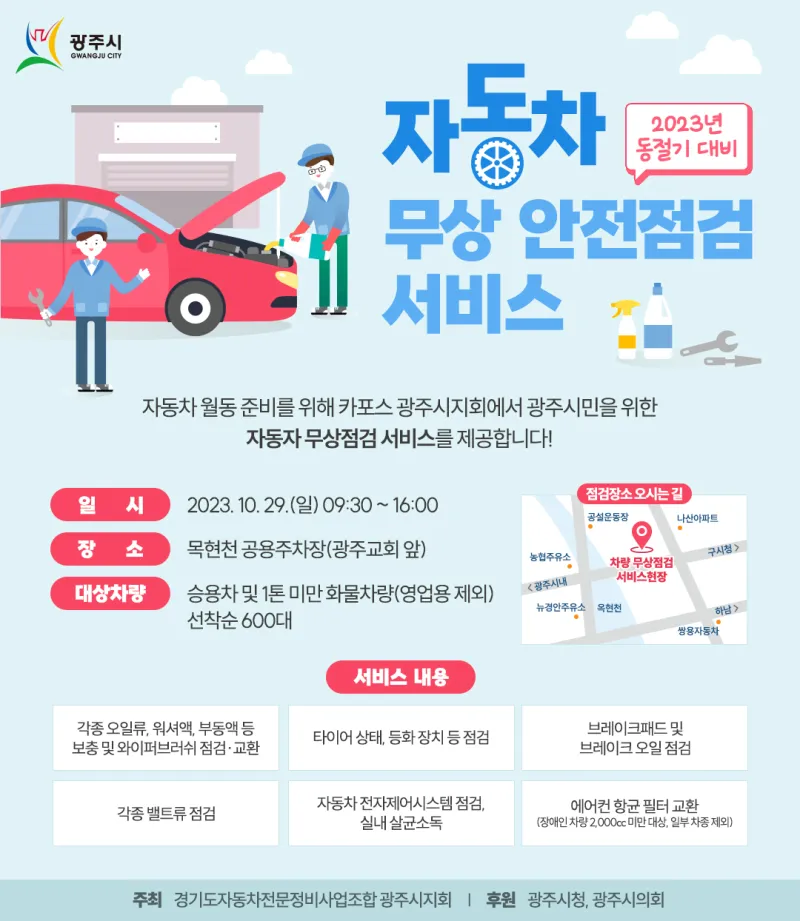광주시민을 위한 자동자 무상점검 서비스를 제공합니다!