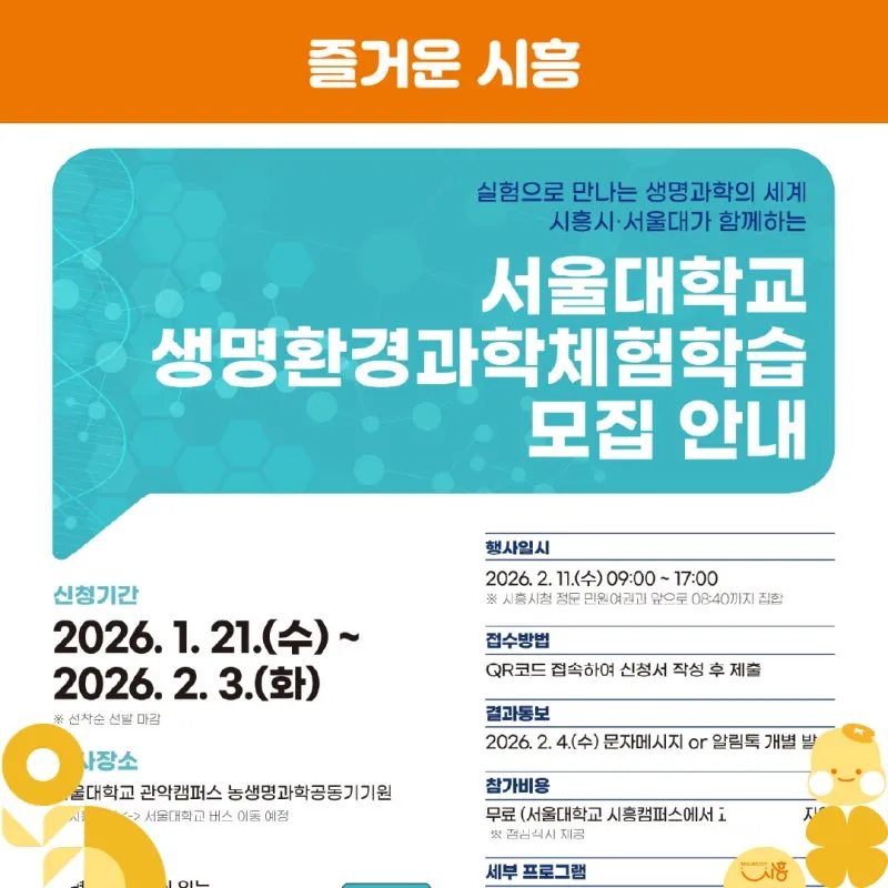 2026 서울대학교 생명환경과학체험학습 모집 안내!🧬
