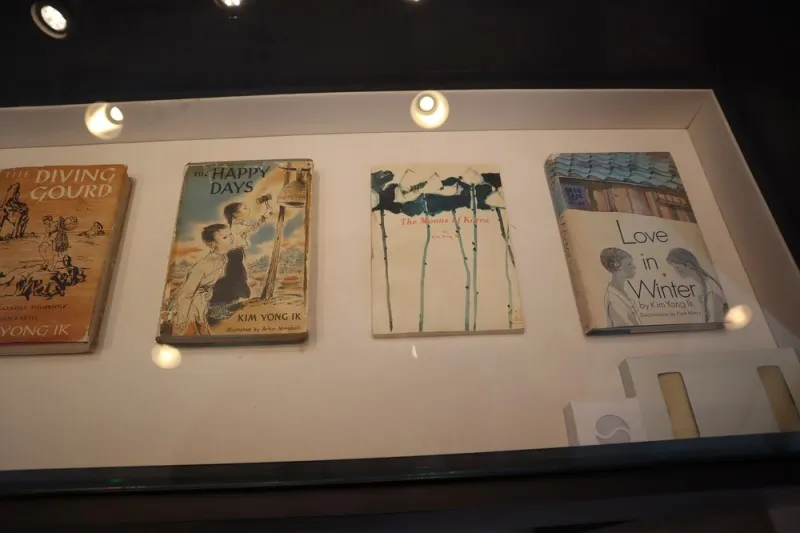전시관에는 김용익 선생의 빛바랜 사진과 연대별로 주요 작품이 전시되어 있습니다. 1982년에는 한미수교 100주년 기념자료집에서 미국에서 가장 유명한 3명의 한국인 작가로 강용흘, 김은국과 함께 소개되기도 하였습니다. 대표적인 소설로는 꽃신, 변천, 한국의 달, 행복의 계절, 푸른 씨앗 등이 있습니다.