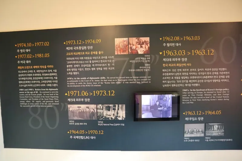 한국의 독립과 정부 수립, 한국전쟁, 세계적인 냉전, 남북한의 첨예한 대치와 경쟁적인 대결외교가 일어났던 33년 동안 외교관과 행정가로서 국제사회에서 우리나라의 위상을 다지는 데 크게 기여하셨습니다.