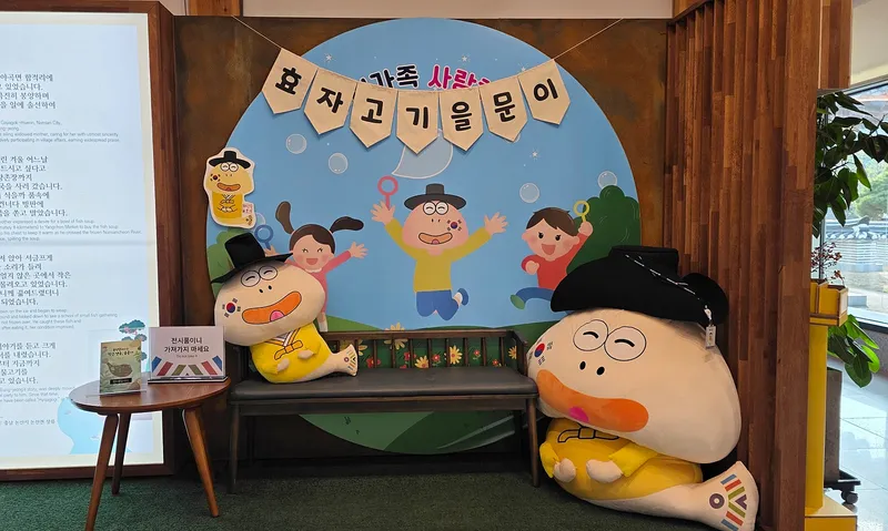 효자 물고기 을문이가 나와서 이야기를 들려주는데, QR코드를 인식해서 배경도 같이 넣어 사진을 찍을 수 있습니다.