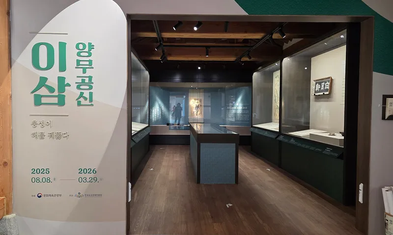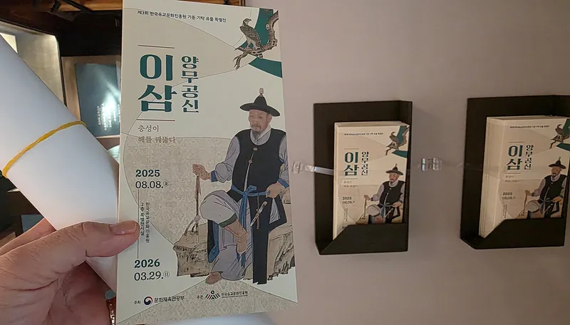 양우공신 이삼 장군 관련 특별전 입구에서는 전시 안내서와 포스터까지 챙길 수 있습니다.