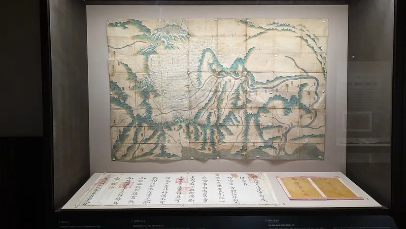 1712년 백두산 정계 이후 조선 영토로 확정된 지역을 중심으로 지명을 담고 있는 지도입니다.