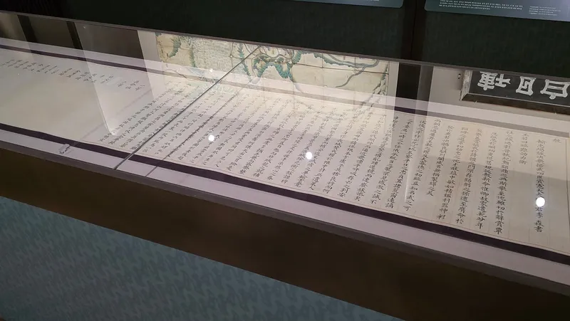 전시장 중앙에 전시한 것은 양무공신 교서(1728)라고 합니다.