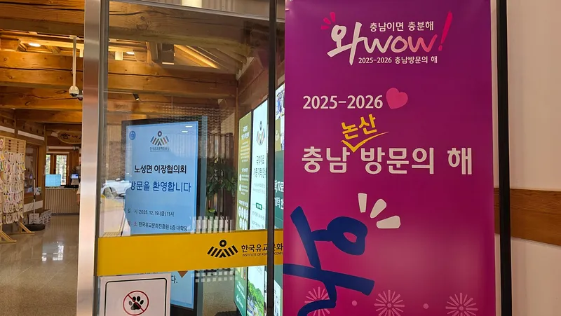 2층 입구로 안으로 들어가면 2025~2026 충남 논산 방문의 해를 알리는 간판도 있습니다.