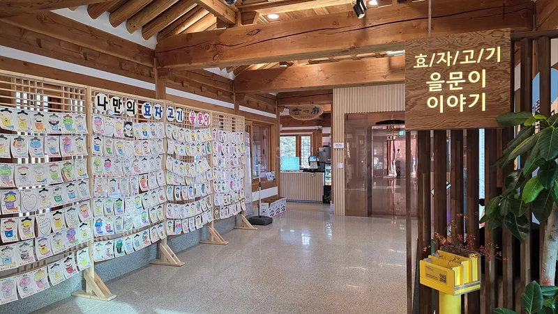 왼쪽에는 이곳을 방문한 분들이 색을 칠한 '나만의 효자고기 을문이'가 백 장 넘게 붙어 있습니다.