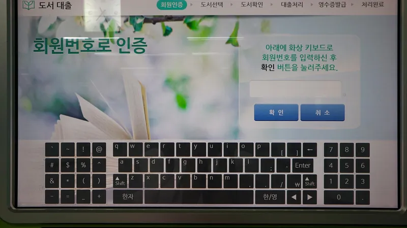 오른쪽 스크린에는 대출, 반납, 대출내역의 카테고리가 있습니다.